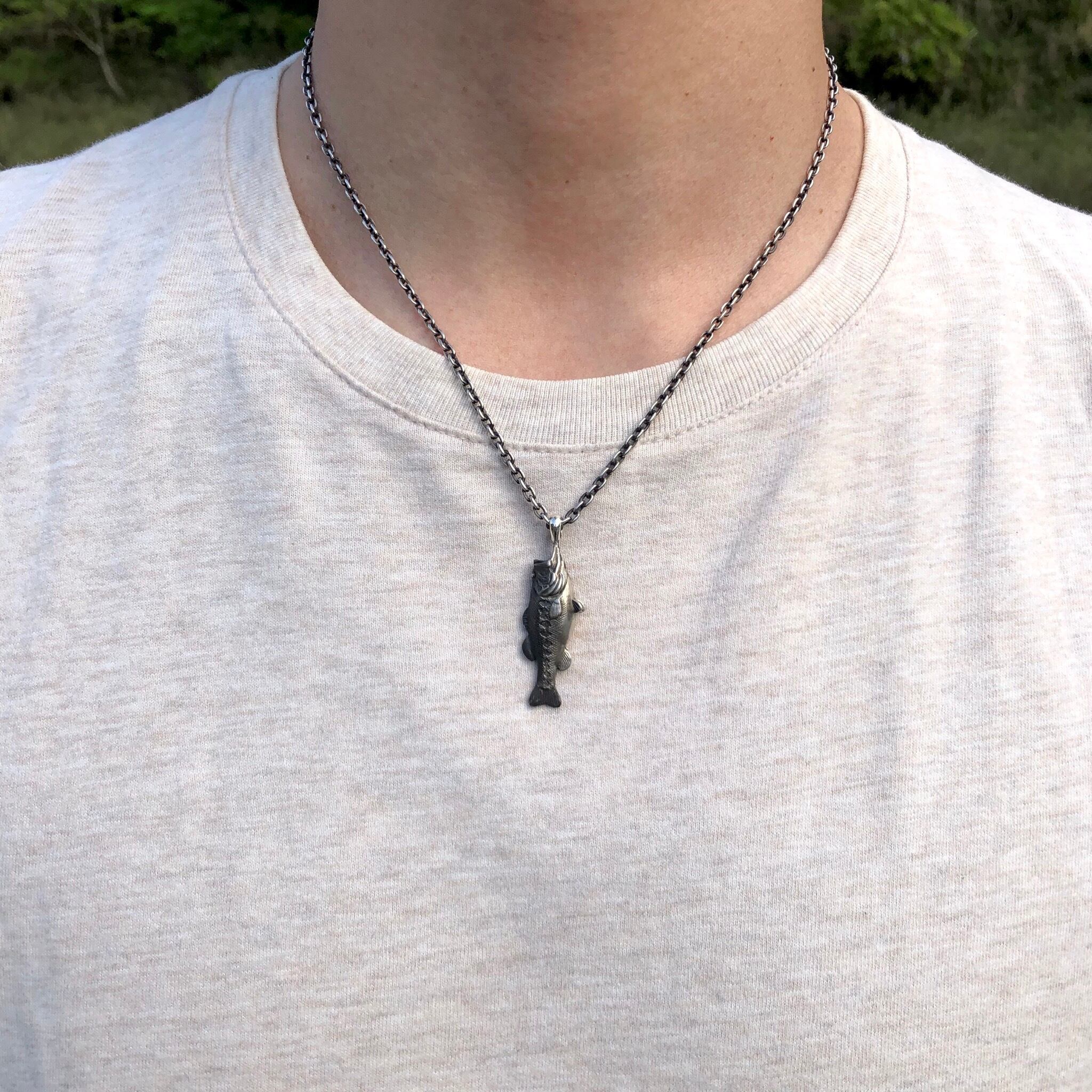 モデル着用のチェーンは燻あずきチェーン、長さ50cm幅2.8㎜です。