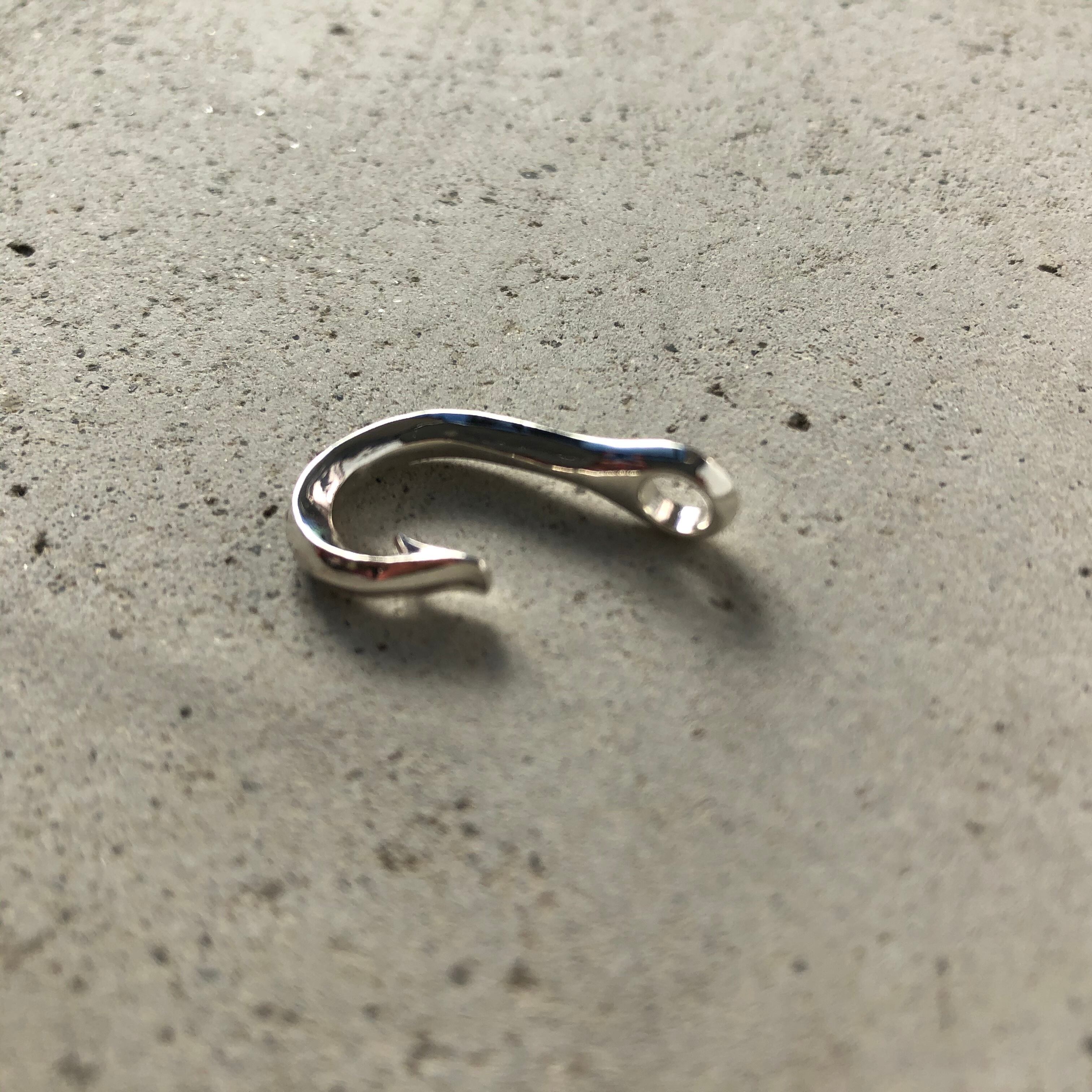 実際の釣り針に近い形ですが〝角〟と〝曲線〟を強調することでアクセサリーとしてのデザイン性を高めました。