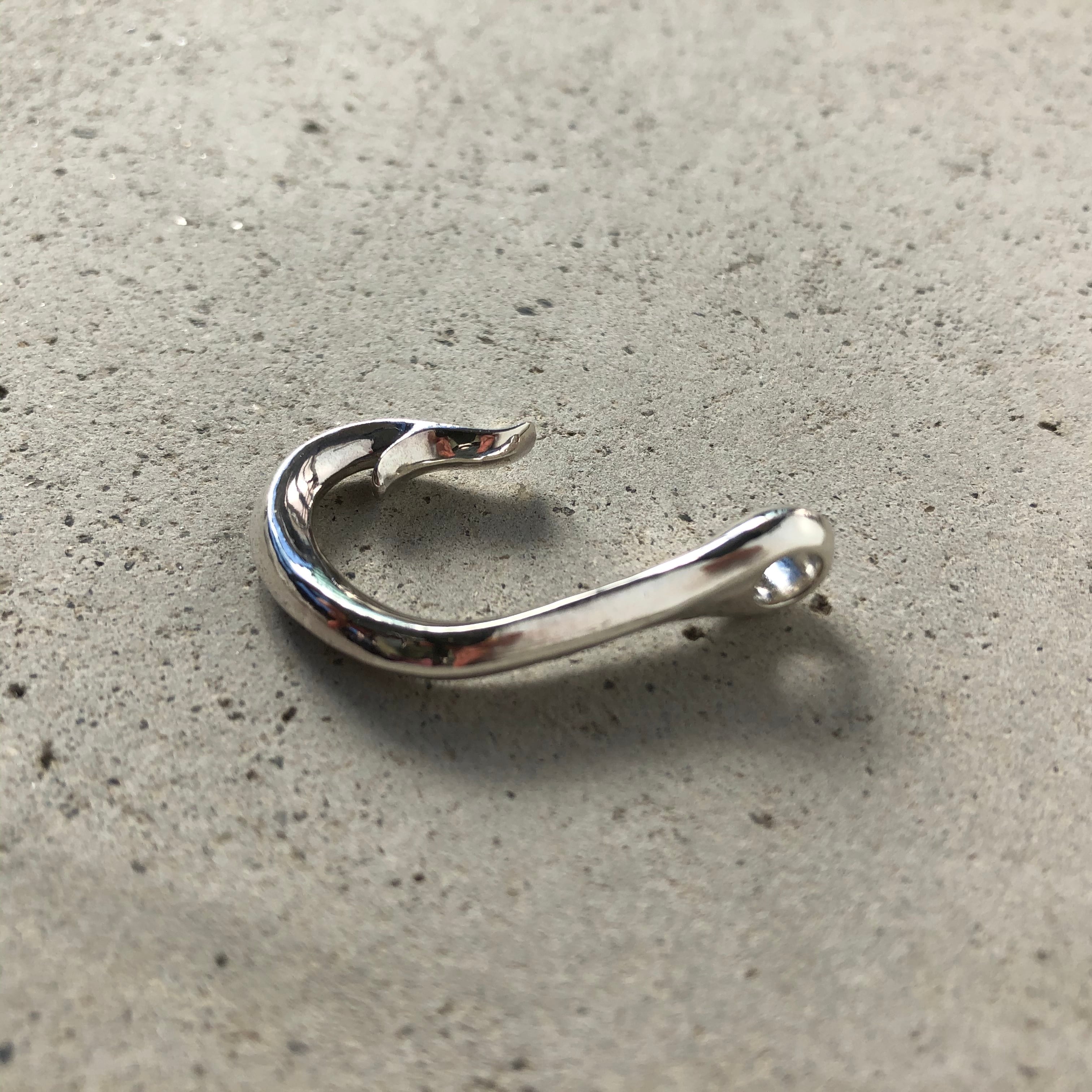 実際の釣り針に近い形ですが〝角〟と〝曲線〟を強調することでアクセサリーとしてのデザイン性を高めました。