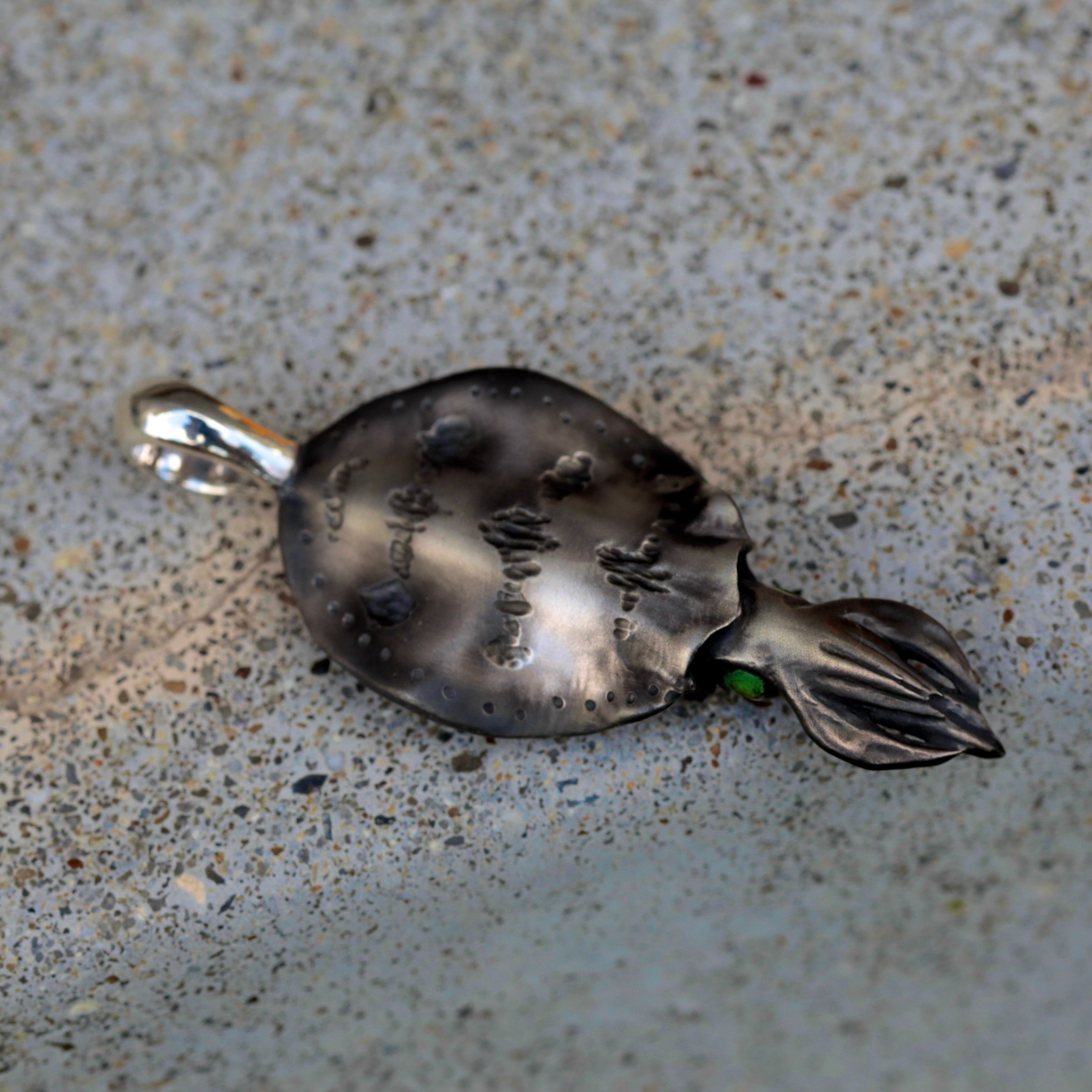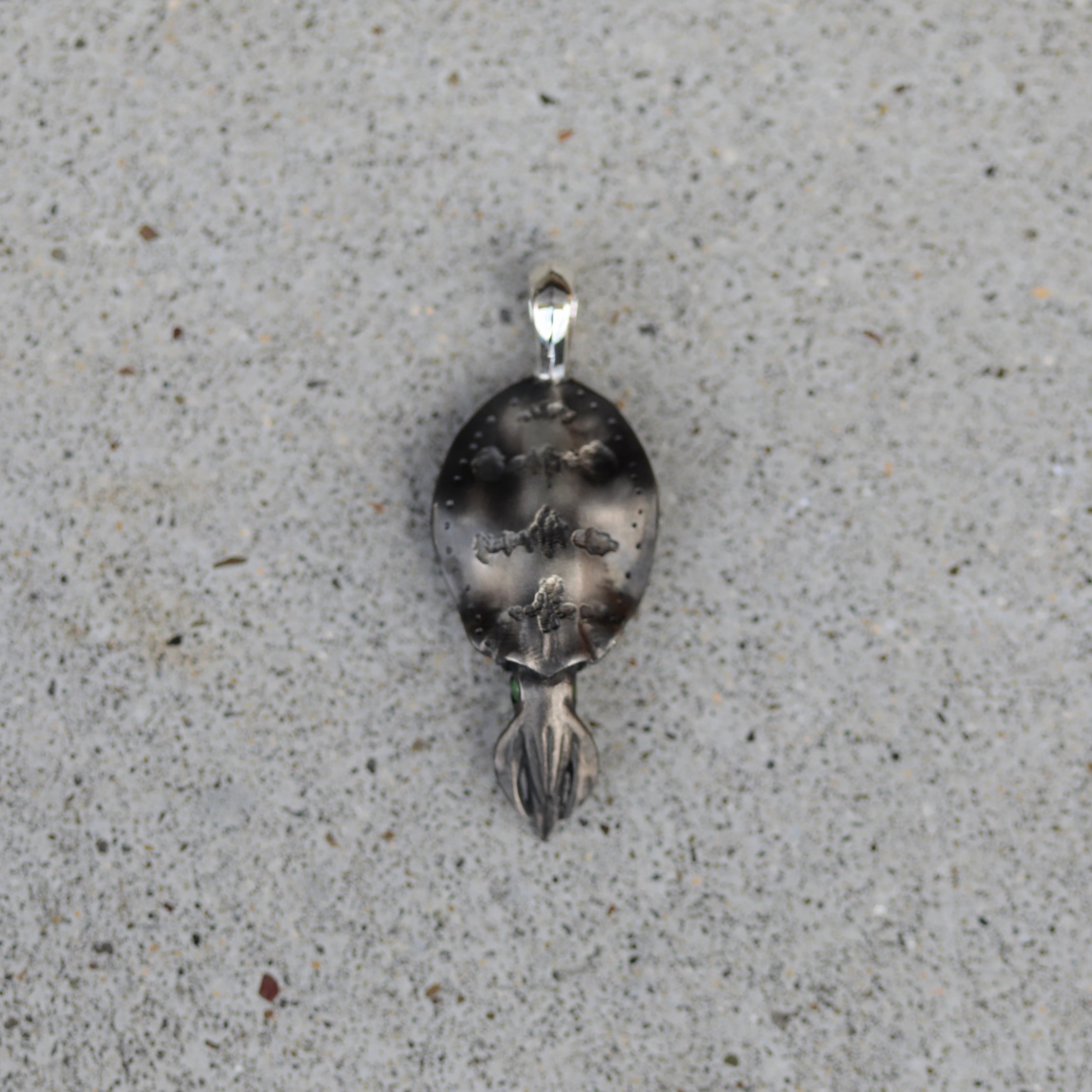 2.5kg程のアオリイカのフォルムを再現したネックレストップです。